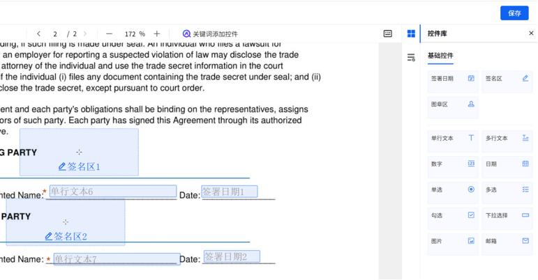 (二)错误率降低:模板管理功能(基础版5个模板,专业版100个模板)支持 API 自动填充签署字段,避免纸质签署 “手工填写错误”导致的返工成本——数据显示,电子合同错误率比纸质合约低 12.5%,每年可减少 5%-40% 的合约价值损耗。