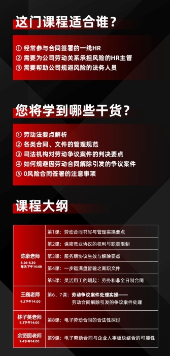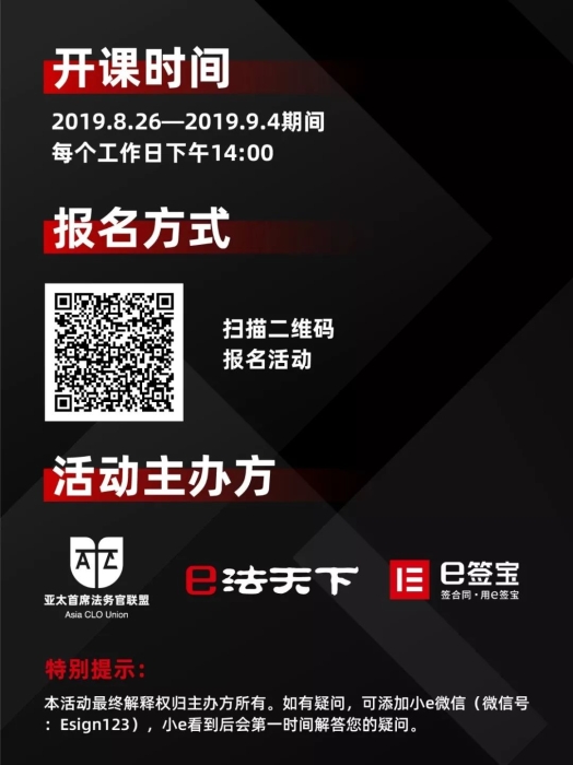 因为明白你的不容易,e签宝联合亚太首席法务官联盟、e法天下,推出重磅线上活动:《精英HR必学系列课——劳动法与合同管理全解析》!