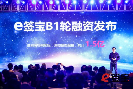 本次发布会上,金宏洲正式宣布完成B1轮融资,总计金额1.5亿元,由前海梧桐领投,清控银杏跟投。这是电子签名赛道上目前为止的最大单笔融资。在此之前,e签宝已于2015年和2016年分别完成PreA和A轮融资,金额为1000万和4500万元。至此,e签宝累计融资金融已达2.05亿元。