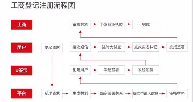 2017年4月,国家工商总局正式发文推行企业登记全程电子化工作,颁布了《工商总局关于推行企业登记全程电子化工作的意见》。要求在全程电子化工作中实现电子签名:通过全程电子化登记方式申请的,材料签署人应在提交的电子申请材料上电子签名。