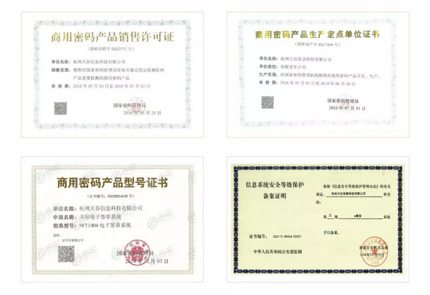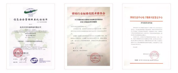我们是资质齐全的互联网电子签名公司,包括商密三证、等保三级、ISO27001认证,高新技术企业,拥有16项发明专利,56项软件著作权,承担2项国家级课题,5项省级课题建设。