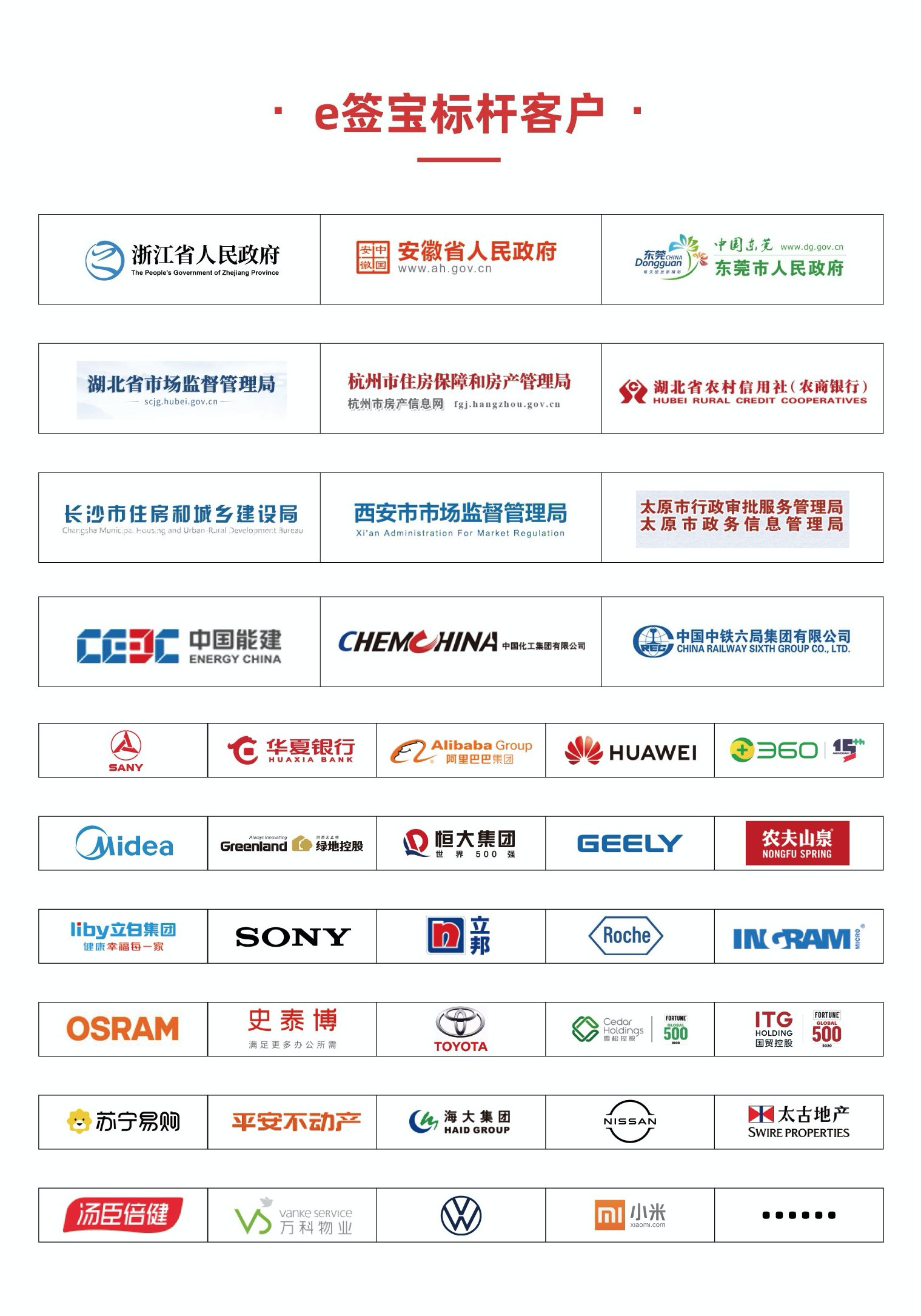 中国石油天然气集团、中铁六局集团北京铁路建设有限公司、中交第一航务工程局、中国葛洲坝集团、中国铁道旅行社集团、浙江城建建设集团、浙江物产金属集团、浙江省机电集团、浙江省旅游投资集团等都在2020年成为e签宝的用户。