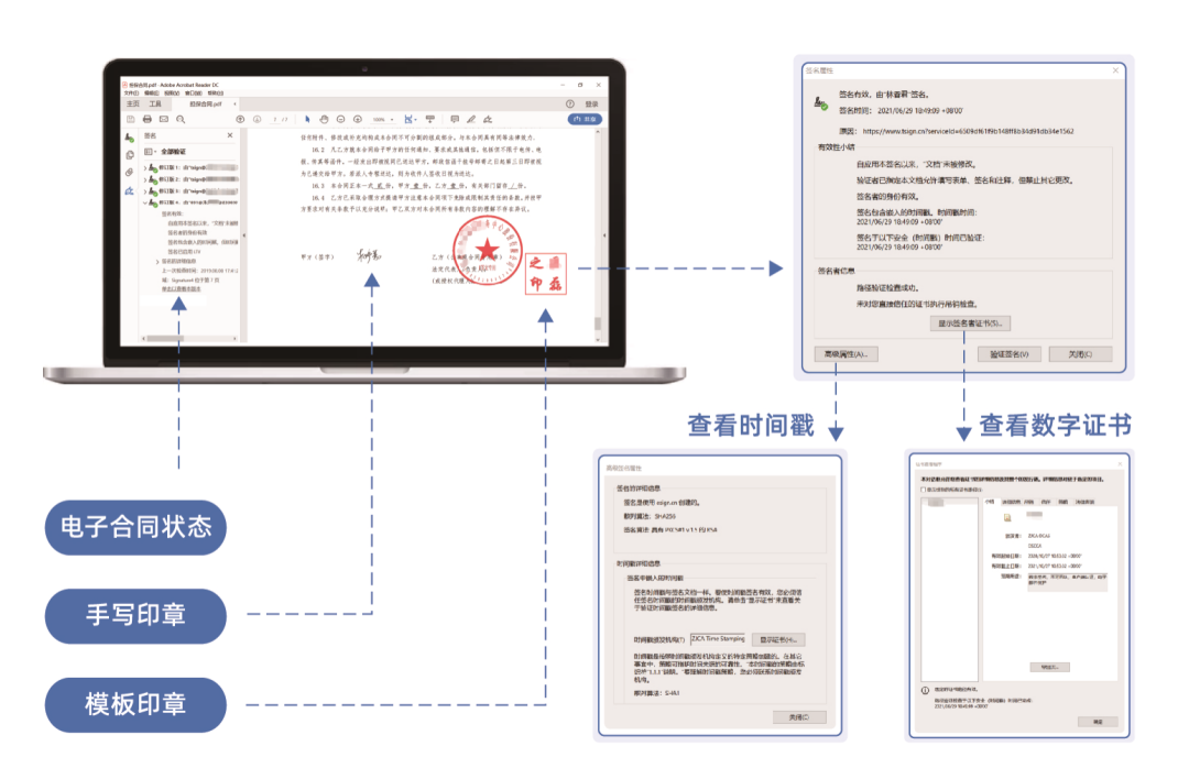 图形印章背后包含着国家权威机构专门颁发的CA数字证书,并加盖国家授时中心时间戳,使其具备法律效力。