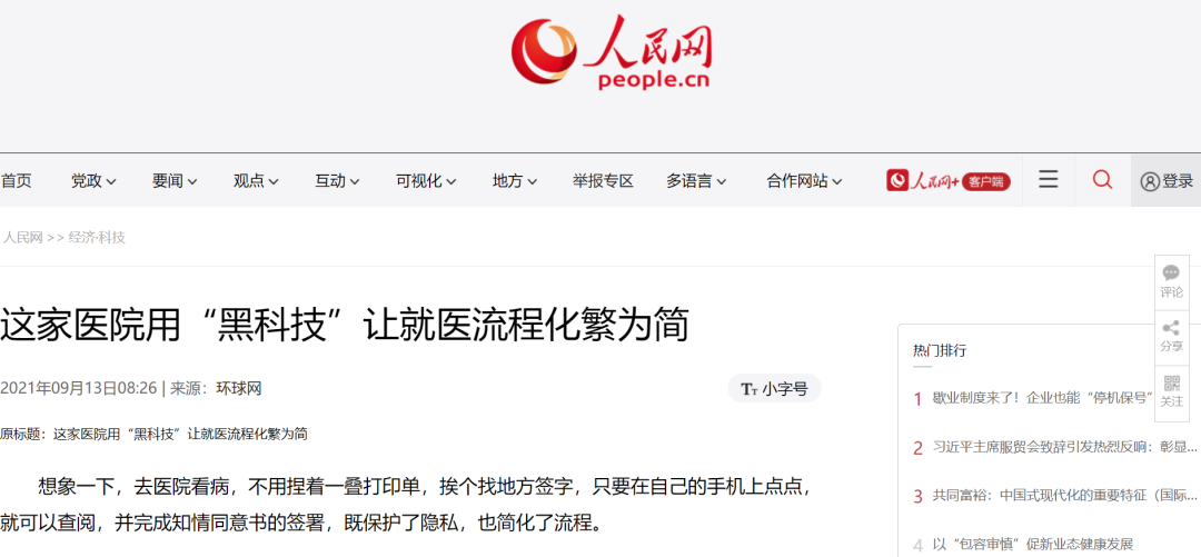值得一提的是,e签宝助力浙江大学医学院附属妇产科医院数字化转型的优秀案例还获得了新华网、人民网等央级媒体的认可点赞。