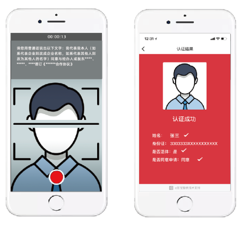 识别出的人脸将与权威公安库比对,确保由本人录制。
