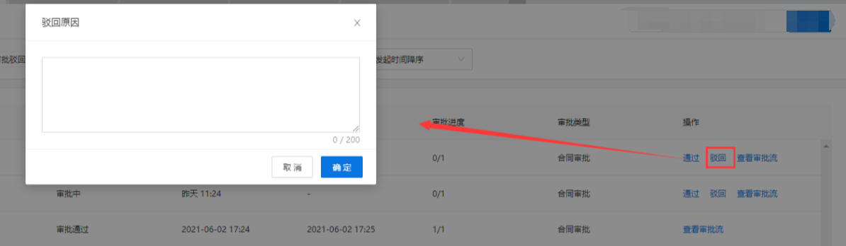 流程驳回时需要填写驳回原因;也支持批量驳回多条;