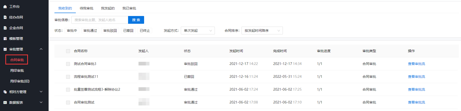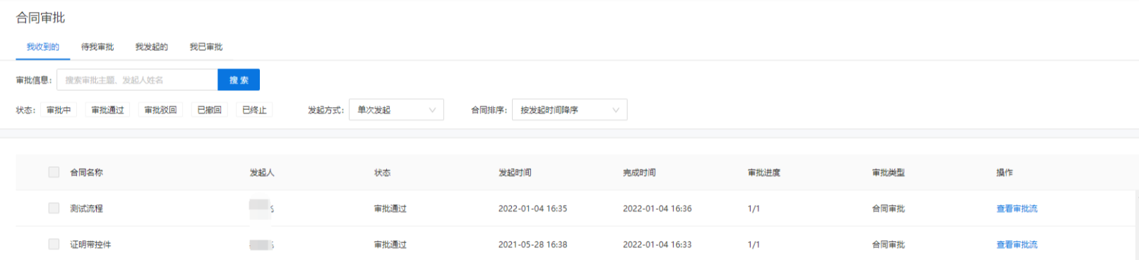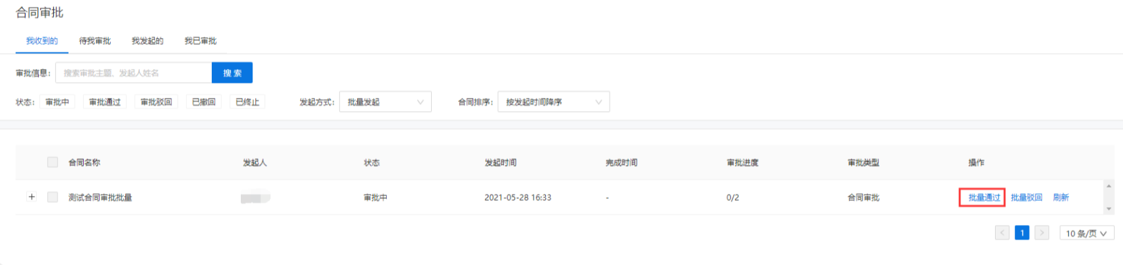 在【审批管理】-【合同审批】下【我收到的】里边找到需要自己审批的合同