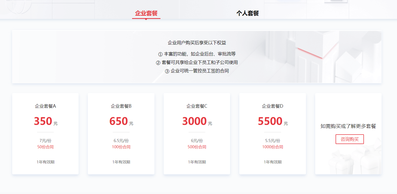 首先,很多人都会发现,各大电子合同平台的报价会给出3-7元,这样的范围单价。这是由于:电子合同一般是通过签署份数来计费的,签署完成之后消耗套餐额度。