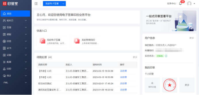 担保机构内部用户通过e签宝天印系统管理印章证书