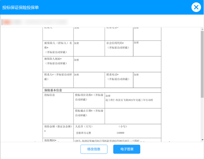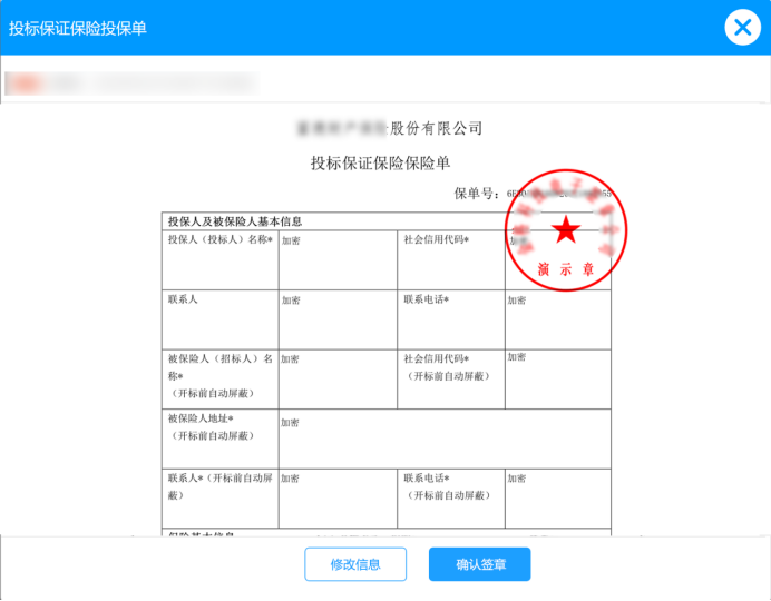 根据交易中心或招投标机构要求,投标单位(即上述的投保单位)需在开标当天的指定时间段内,提供密文+明文形式的电子保函文件。此时,云端保平台根据预设好的开标信息,借助e签宝服务,远程解密生成OFD或PDF格式的明文电子保函文件,展示全部保函内容。