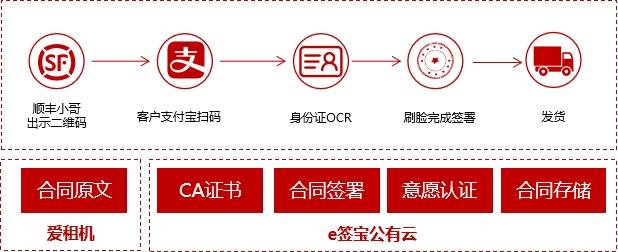 2) 由于客户租赁的产品价值较高,为了确保产品能安全送到客户手中,爱租机要求客户本人签署收货单才算完成租赁。但是无论是邮政还是顺丰的线下签署,都无法完全控制代签代收的情况,因此需要引入e签宝完成本人实名并在线签署收货单。