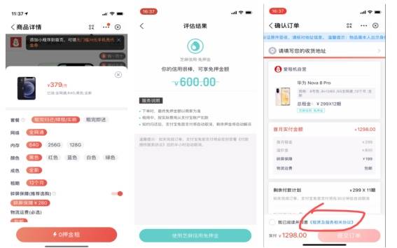 1) 爱租机业务全流程线上,芝麻信用≥600或小白信用≥85分的用户,可享受免押金租赁,在线签约是爱租机全流程线上的必备环节。