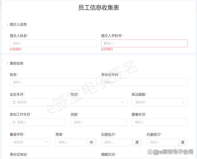 结合自研低代码能力,e签宝智能合同打造了员工信息采集器,企业无需使用HR系统即可高效采集员工个人信息。企业可使用信息采集器搭建个性化表单让员工填写,不符合填写规范的信息将一键驳回。同时,信息采集器可以将采集到的信息一键关联到劳动合同、保密合同等多份合同中,无需手动复制粘贴,既保证信息的准确性,也大幅提升合同生成效率。