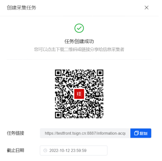 采集任务信息填写好后,点击【生成二维码和链接】,可以将生成好的二维码或者链接发给对应人员。