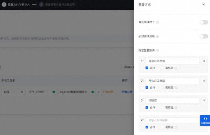 在为新员工办理入职的过程中,除了签署劳动合同,员工还要提交许多材料,如“身份证、学位证书、荣誉证书、职业技能证书、体检报告等,HR可在发起签署流程时,设置“附件要求”,员工即可在流程中上传指定附件,帮助HR高效收集入职材料。