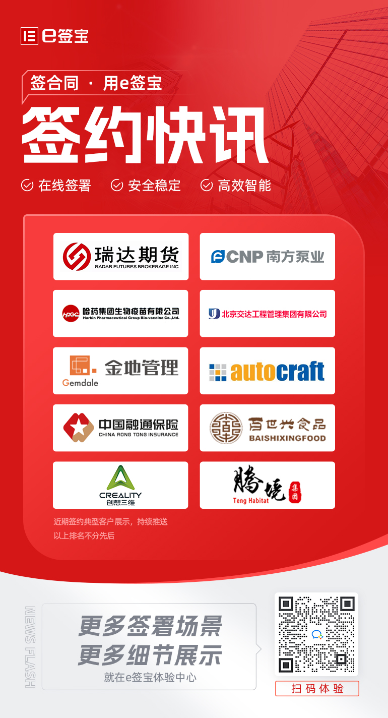 本周签报:南方泵业、瑞达期货、融通财险等企业选择引入e签宝电子签章服务,扫描海报二维码,加企微免费体验!