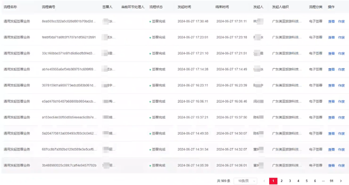 美亚旅游的合作协议签署场景是集成致远OA,由业务员在OA编制合作协议,完成后发起合作协议申请。经过内部多级审批,审批完成后触发电子签流程。