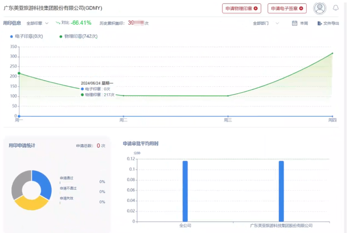 美亚旅游电子签于2024年3月上线,对接的业务系统致远OA,业务场景包括客户合同协议场景。内部正在继续全面推广中,后续签署量会持续提升。