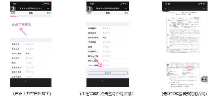 渝之旅的经营模式非常适合引入电子签名,旅游合同有比较明显的特点: