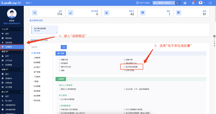 OA登录后,在流程概览模块中,选择文件发起流程审批操作。