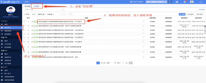 流程流转至审批节点:根据流程提示完成审批操作。