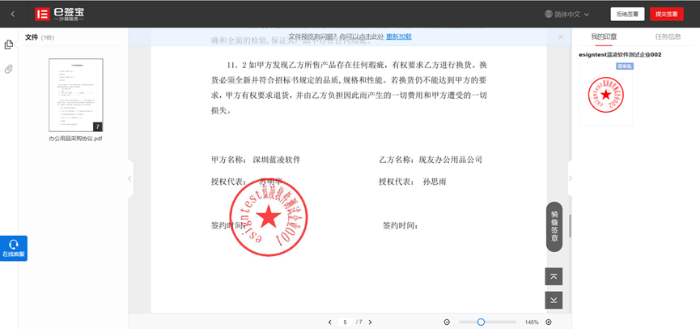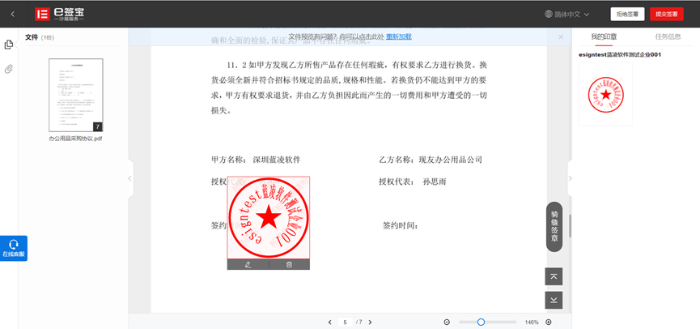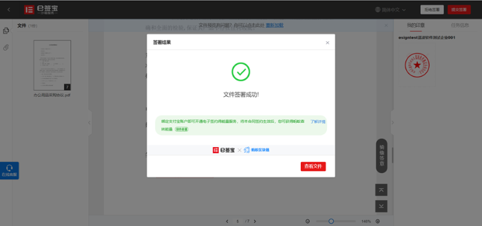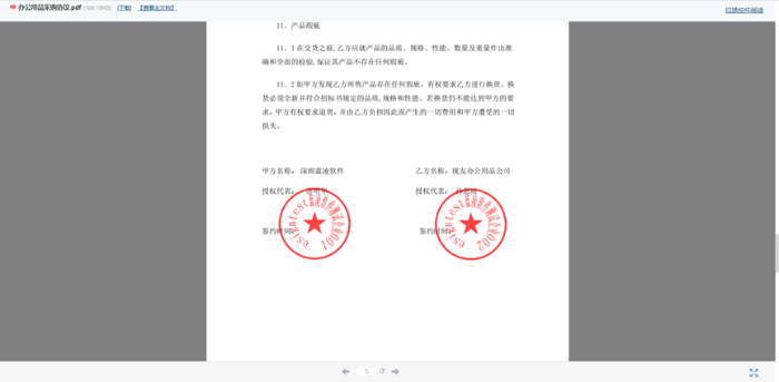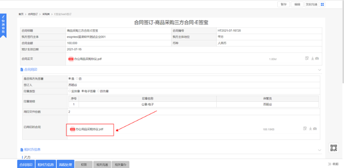 6、 双方签署用印后,用印文件自动回传到合同系统,刷新可以查看用印文件。