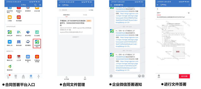 5、集团内部个人通过集团企业微信工作台进行线上签字、查看、合同管理等操作。