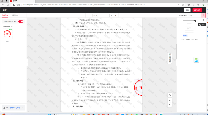完成实名认证后可以签署合同,可拖动签章进行盖章。
