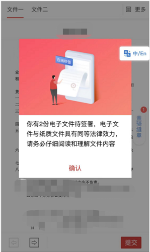 在中间平台的小程序亦可查看文件并完成签署操作。