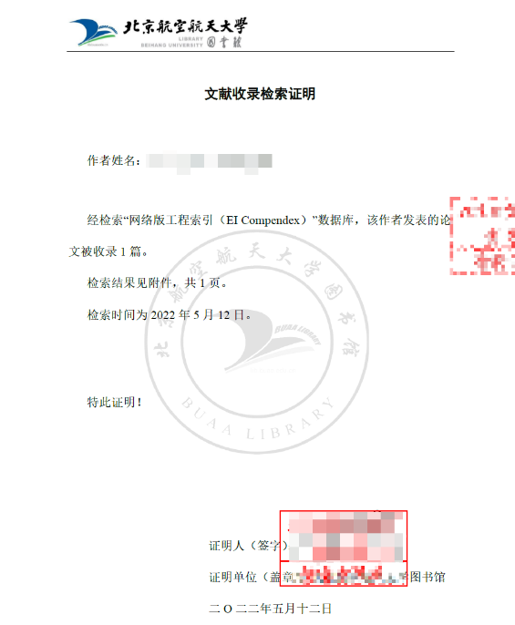 当检索证明完成时,申请人确认证明内容后,再缴费完成,图书馆负责的老师将加盖电子签章后的电子版的检索证明,直接发送至申请人的电子邮箱中。
