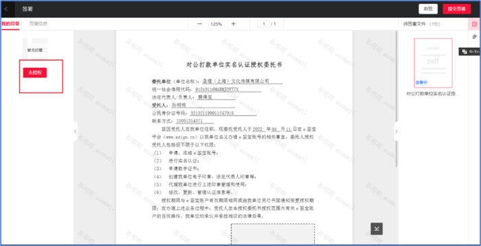 授权完成后需要进行意愿校验进行签署。