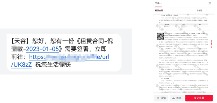 2、租户收到签署短信,通过短信链接完成实名认证与合同签署