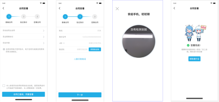 2、企合同查看确认无误,首先完成实名认证,刷脸认证,完成签署。