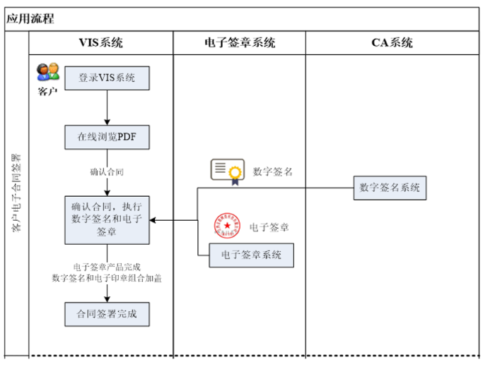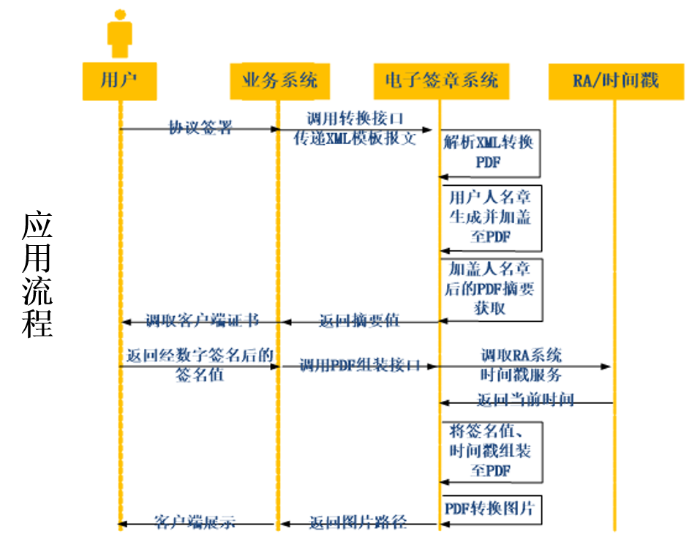 中国石化云签子系统与外部CA系统对接,支持用户通过云签子系统申请外部CA证书,并完成用户、印章、CA 证书绑定。业务系统调用云签子系统API接口将待盖章文件上传到云签子系统,云签子系统通过盖章用户信息获取印章信息进行盖章操作,盖章完成后通过外部CA证书进行数字签名,最后云签子系统将盖章后文档返回给业务系统。
