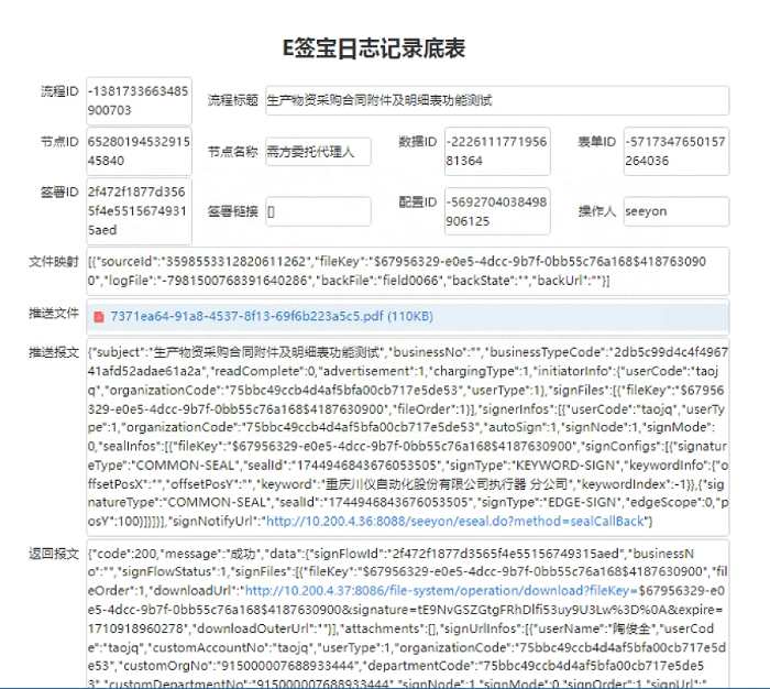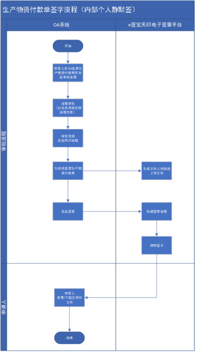 5、签章系统后台自动完成生产物资付款单的个人签名,并将签署完成的PDF文件回传至OA系统;