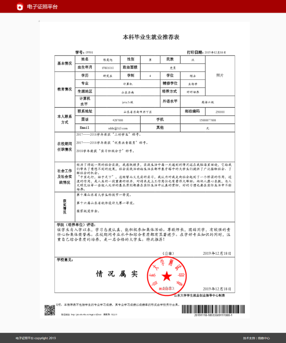 3、纸质证照文件核验,可以通过浏览器访问、手机扫描电子证照下放提供的URL地址或者二维码。访问山东大学电子证照官方网站,核验原始证照信息。