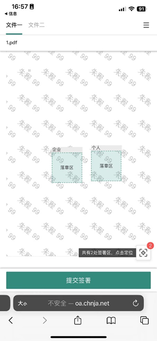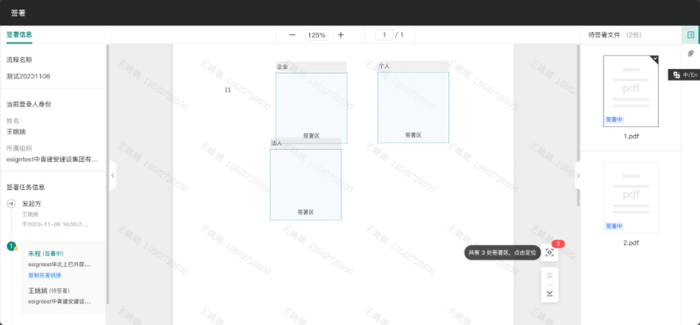 设置完签章区之后点击“发起签署”按钮会再次确认签署信息,点击确认之后相关人员就会收到签署短信或者弹出网页,按照设置的顺序依次进行签署。