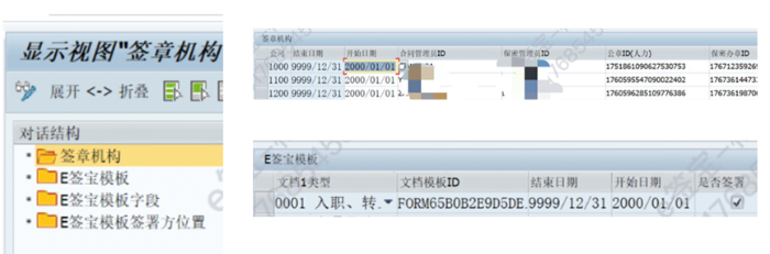 在SAP中,对应电子签署有如下四个配置表,其中签章机构和E签宝模板的相关信息是手工维护的,E签宝模板字段和E签宝模板签署方位置两个表的信息SAP通过调用查询接口实现了数据的自动更新。