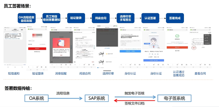 4、SAP发起签署,员工收到短信签署,HR在E签宝用章子系统中签署。