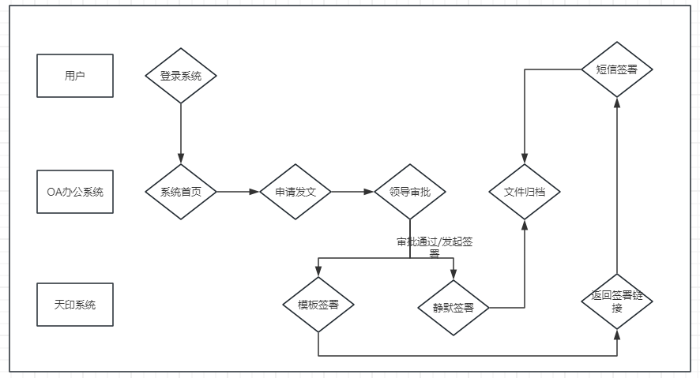 用户在oa办公中,需要对发文进行审批后的静默签署,或者手动签署,签署后的文件由OA系统归档。