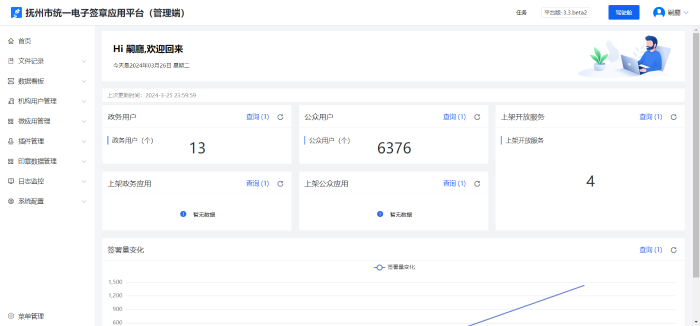 为抚州市各机关单位提供政务侧和公众侧电子印章线上签署能力。