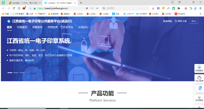 江西省统一电子印章系统为全省提供高效便捷的公共服务基础设施,实现商事主体、自然人用章申请、管理、使用、验证全链路数字化,能够解决线下印章管理、丢失、抢夺、伪造等各种安全问题,实现内外部可信流转、授权使用、实人核验等方式。降低企业协作信任成本的同时加速企业关键业务数字化的进程,让在赣企业切实享受到数字经济红利,从而实现“江西速度”再提升,为江西政务服务建设再添一张崭新的金名片。