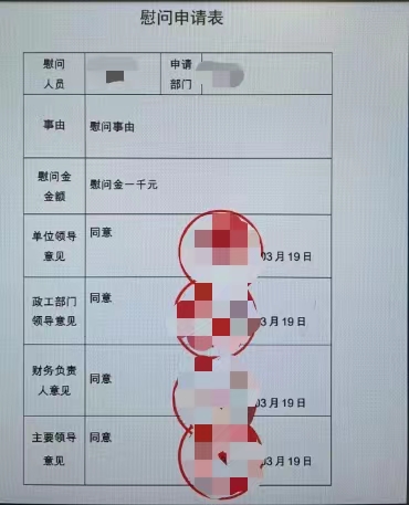 在公安内部也有很多文件需要签署,比如:慰问金的申请,慰问金申请这一份文件涉及多个部门,需要多个领导审批,在没有引入电子签章的时候,这一申请是繁琐、费时的,引入电子签章后,线上审批,效率高,速度快,全程无纸化,做到了节约成本。