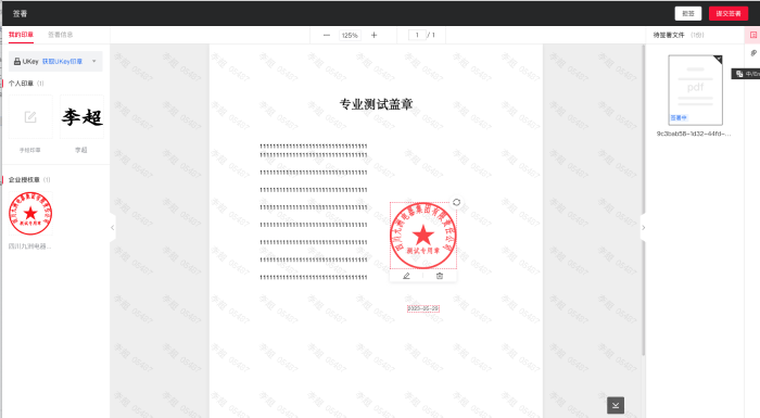 在e签宝签署页面进行电子用印。