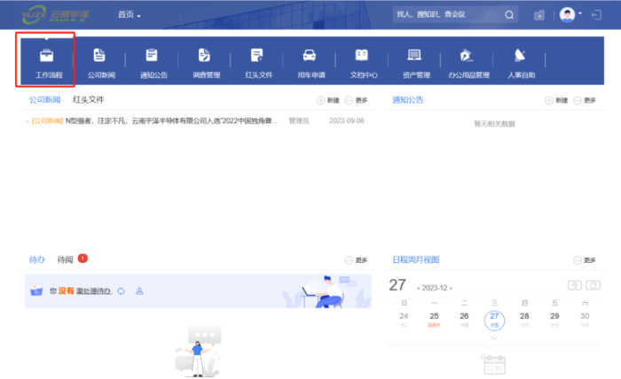 1、通过登录oa系统,发起工作流,点击工作台流程管理