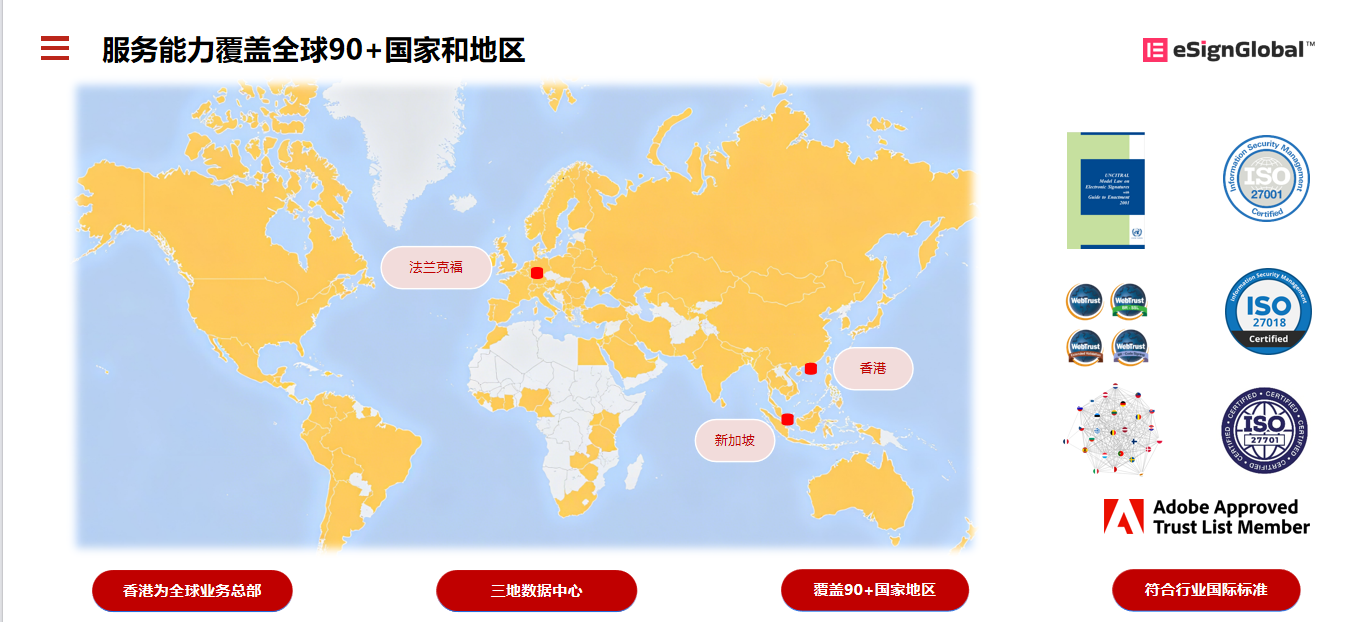 正是洞察到这些痛点,亚太电子签名行业领军品牌 e 签宝推出国际品牌eSignGlobal,以 “全球签管一体化方案” 重构跨境电子签名流程,既扎根中国合规基础,又兼容国际通用标准。