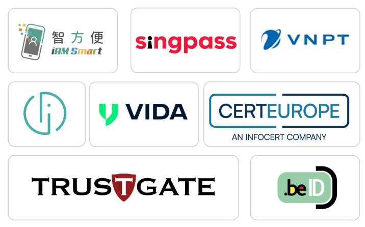● 高级认证:接入生物识别(人脸识别)、香港智方便(iAM Smart)、新加坡 Singpass、越南 VNPT 等地区性权威认证工具,金融、政府等高危场景也能确保身份真实,符合当地 eKYC 要求。
