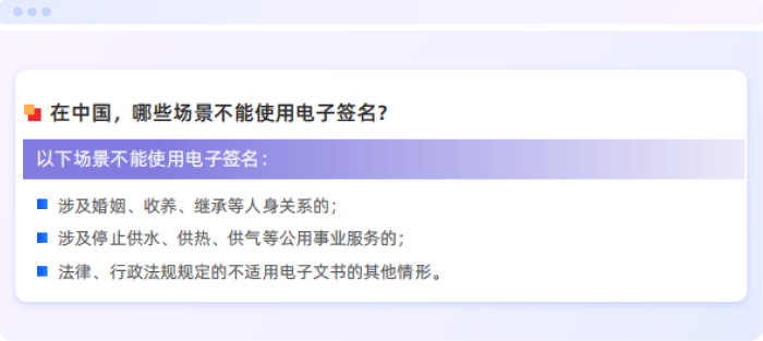 中国方面,《电子签名法》定义了“可靠电子签名”的概念,但明确排除了涉及人身关系、公用事业服务等特定场景。中国电子签名法律要求电子签名必须满足真实性、完整性和不可篡改性,且需通过国家认证的服务提供商进行合规操作。