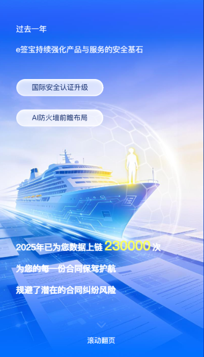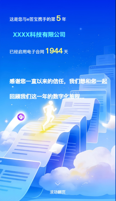 这是你与e签宝携手的第几年,你的企业已启用电子合同多少天。从第一次尝试无纸化签署,到如今全流程数字化,每一步都是成长的证明。