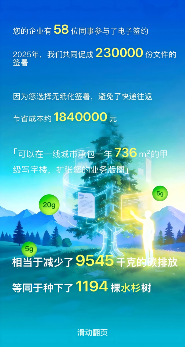 2025年,企业共有多少位同事参与电子签约,共同促成多少份文件顺利落地,每份合同平均节省多少天签署时间。原来高效协作,就是每个人都能少走弯路。